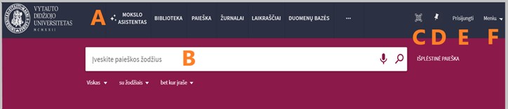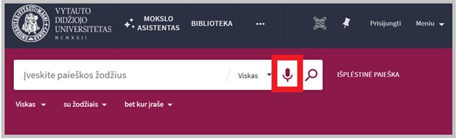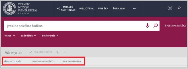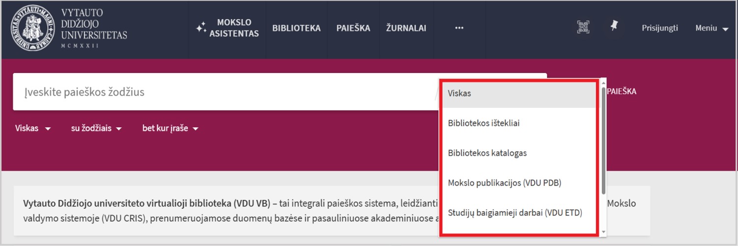 Kitus pageidaujamus paieškos išteklius galima pasirinkti iš sąrašo paieškos juostoje.