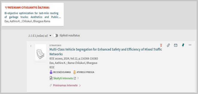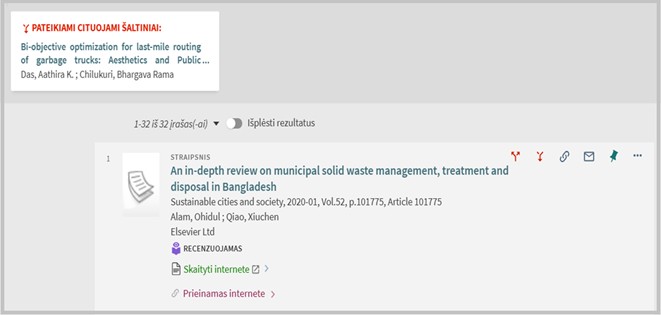 - ŽIŪRĖTI INTERNETE skirta tik el. ištekliams. Čia pateikiama informacija, kuriose duomenų bazėse el. leidinys yra prieinamas bei nuorodos į visą leidinio tekstą .