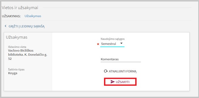 - Patvirtinkite užsakymą spragtelėdami mygtuką UŽSAKYTI.