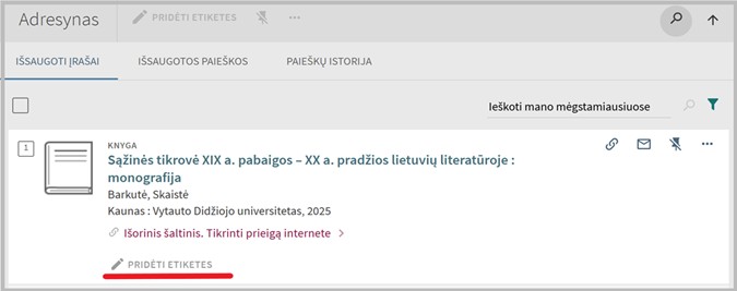 - Pasirinkite pageidaujamą įrašą ir spustelėkite mygtuką PRIDĖTI ETIKETES.
