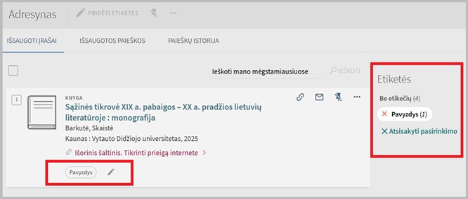 Pridėdami įrašams etiketes, vėliau galėsite juos sugrupuoti į teminius įrašų sąrašus. Vienam įrašui galima priskirti kelias etiketes.