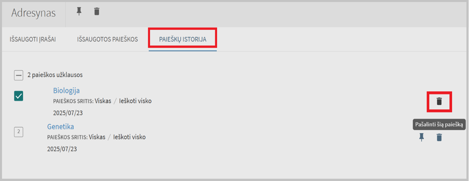 - Spustelėkite Adresynas > PAIEŠKŲ ISTORIJA.