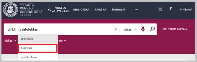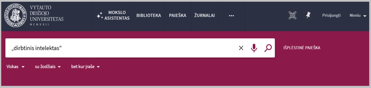 Pageidaujant ieškoti tikslios frazės (žodžiai greta), paieškos žodžius rašykite kabutėse, pvz., „dirbtinis intelektas“.